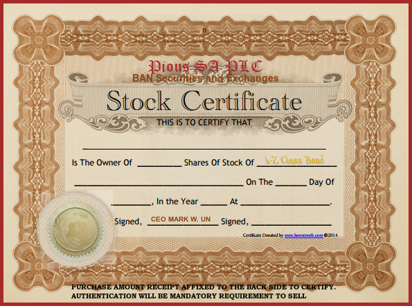 Send a gift certificate to friends and family or buy it now for your future use. The image above is not the purchase. Below is the actual product for purchase. Corporate Stock. The purchase order number will be the stock certificate registration number. Value will increase by 2035 or much sooner due to flux. BUY NOW !!
